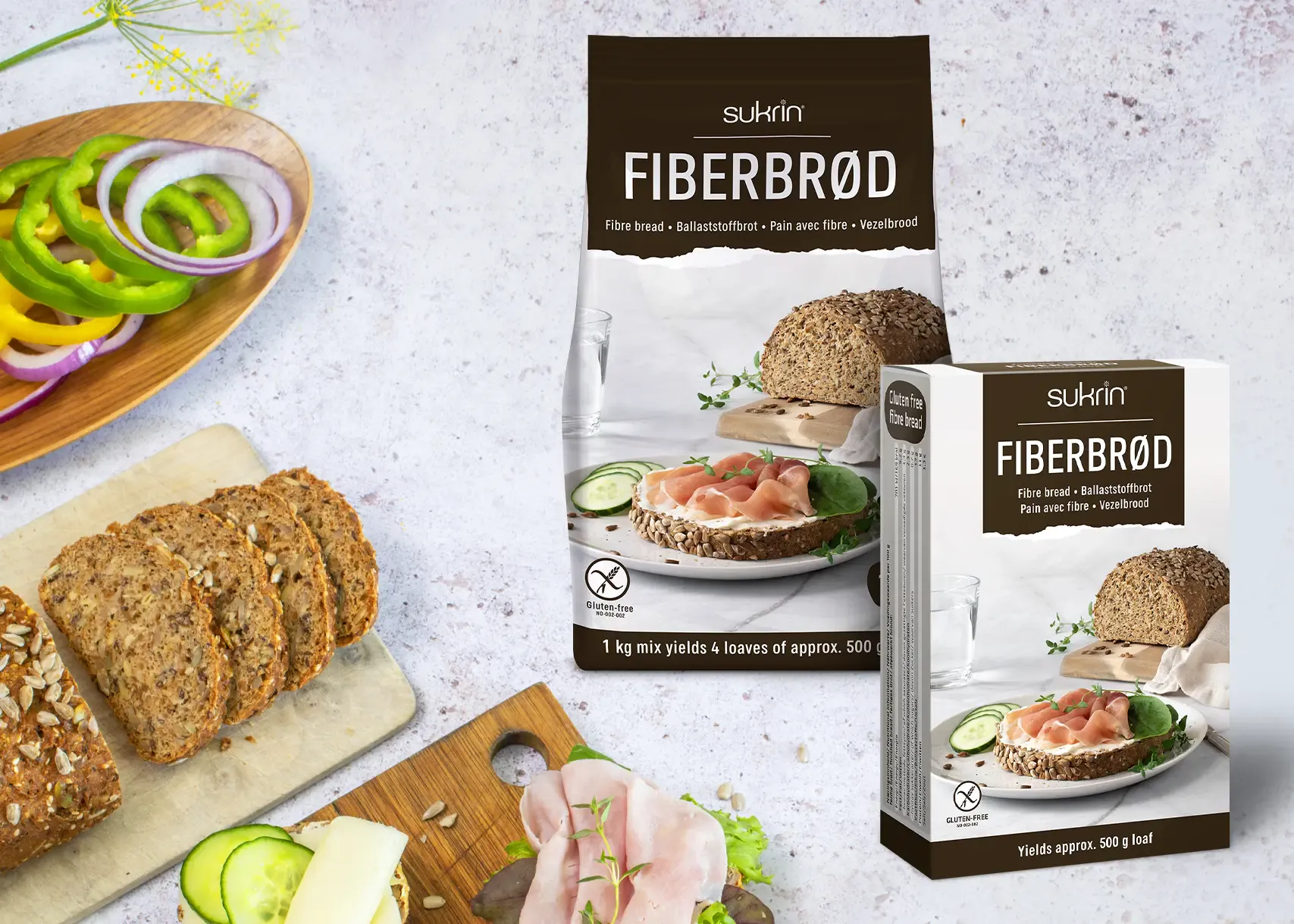 Vårt populære Fiberbrød er nå blitt enda bedre! Brødet har fått luftigere konsistens og bedre smak. Vi har fjernet både egg og inulin fra ingredienslisten, slik at brødet nå er vegansk og mer magevennlig. Det er fortsatt svært fiberrikt, og har fått et enda høyere proteininnhold. Anbefaling for optimal tilberedning av det nye Fiberbrødet Etter de siste justeringene på Fiberbrød har deigen blitt fastere, og den trenger ikke lenger tid for å svelle. Vi har sett at det kan være utfordrende å få blandet deigen godt hvis den lages i store porsjoner. For et  best mulig resultat anbefaler vi derfor følgende: Bland mindre porsjoner: Bland 250 g brødmiks med 350 g vann om gangen. Dette gir en jevn og håndterbar deig. Lag maksimalt ett brød per porsjon: For å sikre at brødene blir skikkelig gjennomstekt, anbefaler vi ikke å lage brødene større enn hva du får ut av 250 g brødmiks. Du kan også gjerne lage mindre brød eller rundstykker. Bak uten form: Vi anbefaler å steke brødene fritt, altså uten form. Dette gir best varmefordeling og et luftigere brød. Med denne metoden blir brødene lettere å forme og steke, og både konsistens og smak blir bedre.   Tips: Vet du at vannet ditt er hardt eller basisk, eller opplever du at brødet får ujevn poring? Prøv å tilsette 1 ss sitronsaft sammen med vannet i deigen.   Ingredienser: Frø og kjerner (solsikke, psyllium, sesam, gresskar, linfrø), fiber (sukkerbete, havre, erter), sesam-mel, erteprotein, fettredusert linfrømel, smaksforsterker (erytritol), mineralsalt (kaliumklorid, natriumklorid), hevemiddel (difosfat, natriumbikarbonat).   Næringsinnhold i ferdig brød per 100 g: Energi: 169 kcal Fett: 9,2 g - herav mettet fett: 1,4 g Karbohydrat: 2,3 g - herav sukkerarter: 0,7 g Kostfiber: 17 g Protein: 11 g Salt: 1,3 g
